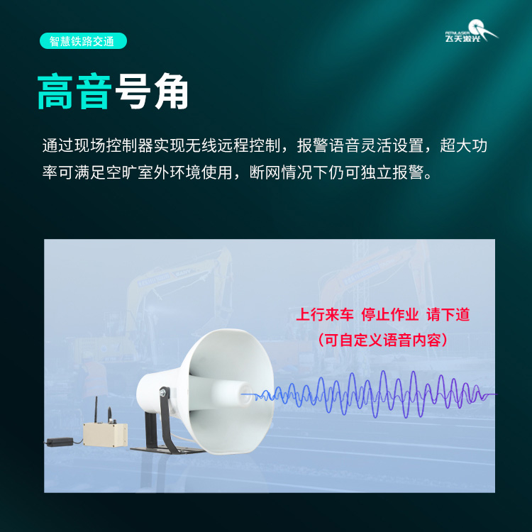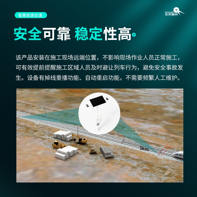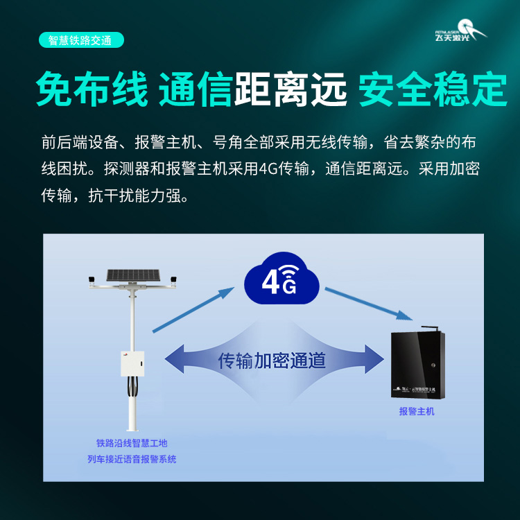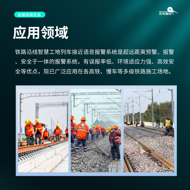 铁路沿线施工场景中,列车通行的不可预测性始终是现场作业安全的重大隐患,一旦出现预警不及时、信号传输不畅等问题,极易引发安全事故。为筑牢铁路智慧工地安全防线,山东飞天光电科技股份有限公司深耕铁路安全防护领域,推出列车接近语音报警系统,以硬核技术赋能铁路沿线施工安全,实现列车接近的精准探测、实时预警,为铁路工地作业人员的生命安全保驾护航。
